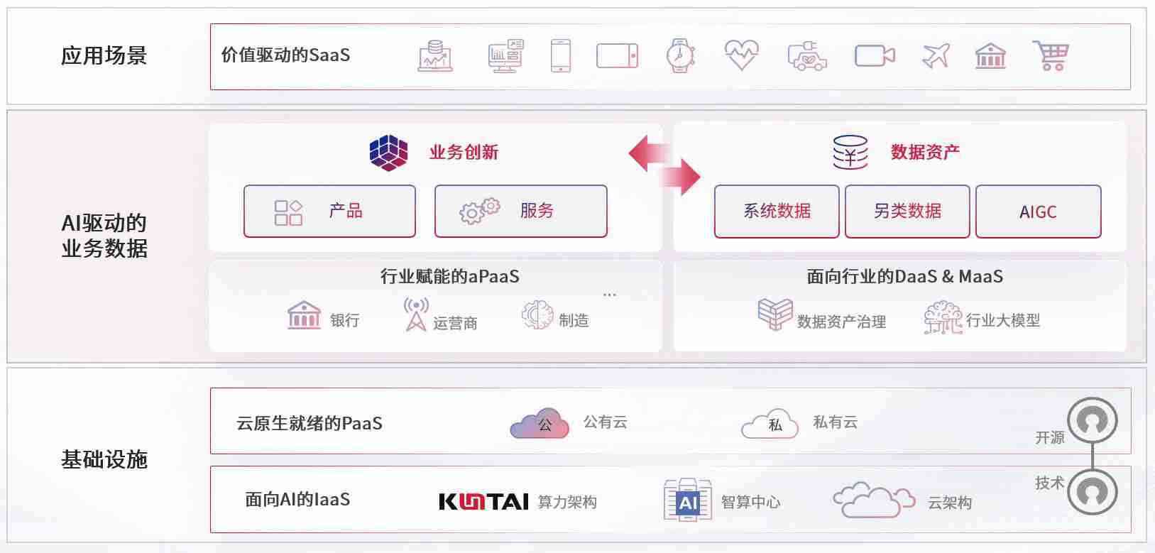 数字时代,,,围绕企业数字化转型的关键要素,,EBPAY钱包官网数码开创性的提出数云融合战略和技术体系框架,,,着力在云原生、、数字原生、、AI原生和信创产业上架构产品和服务能力,,为处在不同数字化转型阶段的快消零售、、、、汽车、、、金融、、医疗、、、、政企、、、教育、、、、运营商等行业客户提供泛在的敏捷IT能力和融合的数据驱动能力,,,,构建跨界融合创新的数字业务场景和新业务模式,,助力企业级客户建立面向未来的核心能力和竞争优势,,,全面推动社会的数字化、、智能化转型升级。。。。